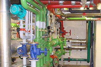 Geb. 241 – Sanierung Zentrale Kühlwasserversorgung im Bestand bei laufendem Betrieb, Systemänderung durch Umbau von offener in geschlossener Anlage.